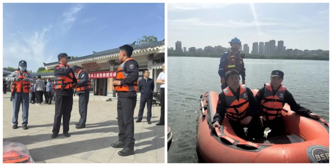 為更好地應對暴雨等自然災害事故,提升市管公園的防汛救災處置能力。近日,市城管局在齊盛湖公園舉行2024年防汛應急救援演練培訓,市保安公司駐齊盛湖項目部負責人及員工積極參加。