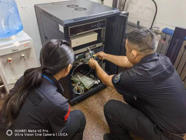 高青大隊(duì)組織值班室進(jìn)行電力、監(jiān)控線路安全檢查